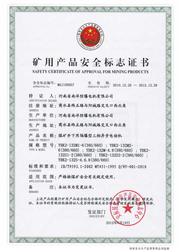 該是為煤礦井下采掘工作面機械設計的電動機,機座由鋼板焊接成形,風罩、接線盒、絕緣結構采取加強措施,電氣性能、安裝尺寸、額定功率等均與YB2電動機相同。本系列電動機的防爆性能符合GB3836.1-2000《爆炸性氣體環境用電氣設備第1部分:通用要求》和GB3836.2-2000《爆炸性氣體環境用電氣設備第2部分:隔爆型“d”》標準的規定,制成隔爆型Exd Ⅰ.適用于煤礦井下采掘工作面。